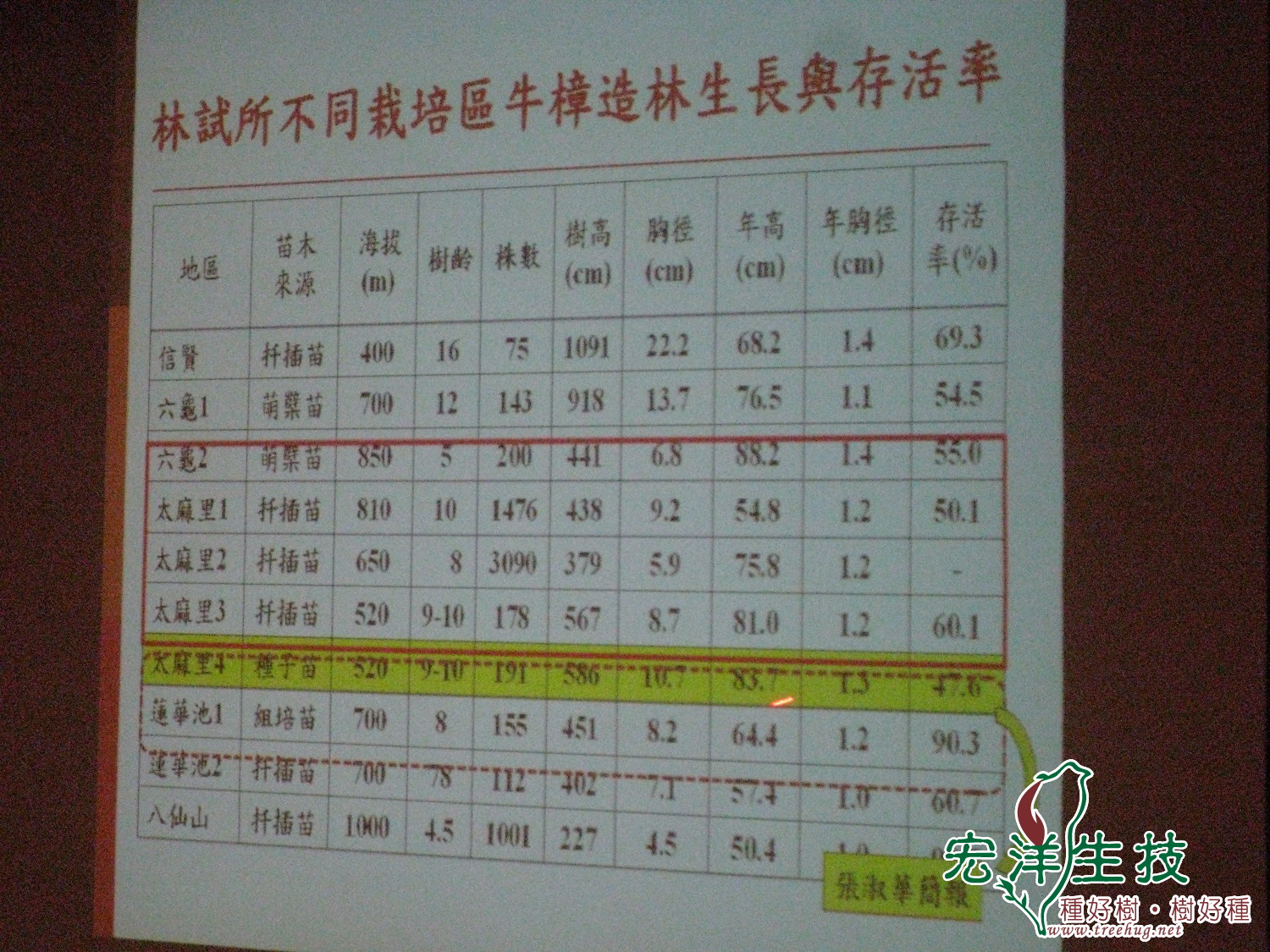 由下圖我們可以清楚的看到牛樟扦插苗,牛樟種子苗,組培苗,與萌孽苗造林後的存活率表現,以組培苗最高90.3 %,扦插苗60 % 以上,萌孽苗50 % 以上,而目前市場上被大力炒作的牛樟種子苗(實生苗)只有47.6 % ,敬陪末座.(2012牛樟生物學與利用研討會)